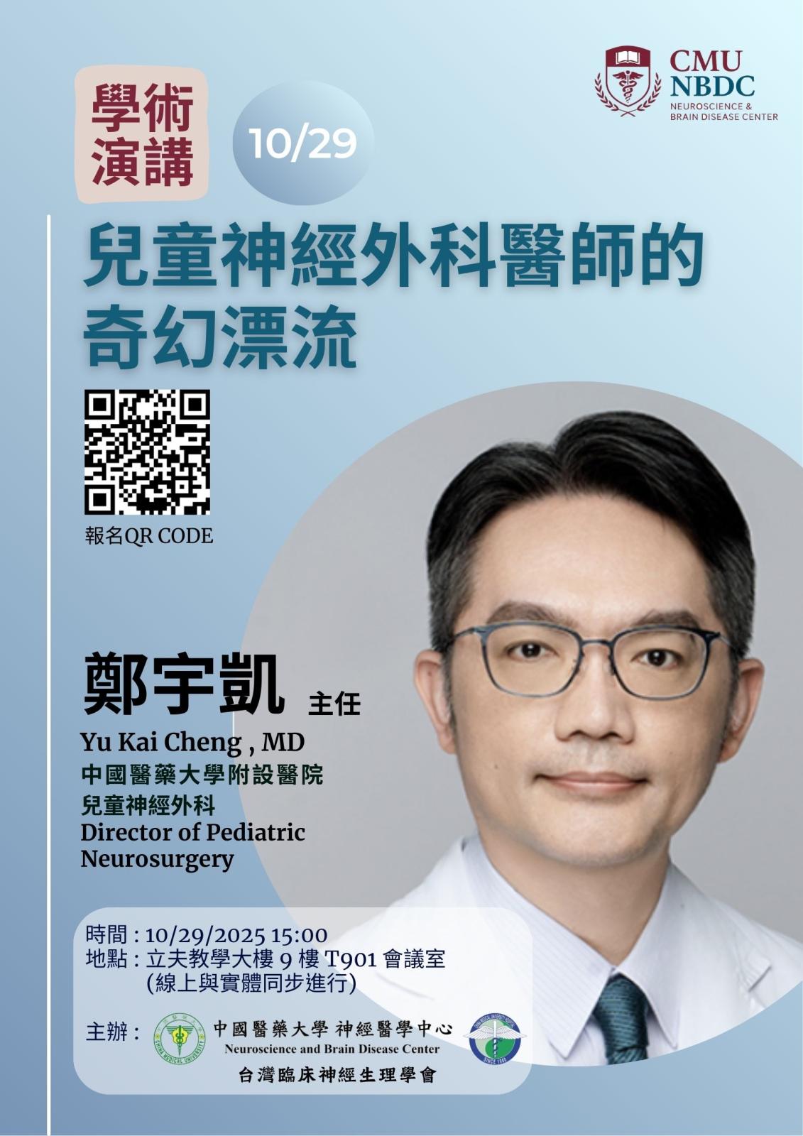 - 講者: 鄭宇凱 主任(Yu-Kai Cheng, MD)/中國醫藥大學附設醫院兒童神經外科